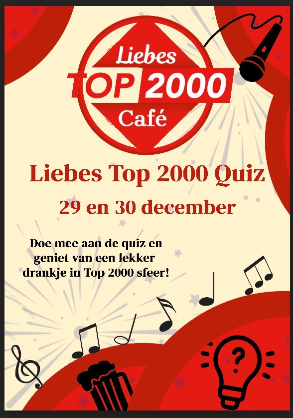 29&30 december is het weer zover: de ultieme Top 2000 Pubquiz! Test je muziekkennis samen met je vrienden en geniet van een avond vol nostalgie, gezelligheid en de grootste hits aller tijden.
